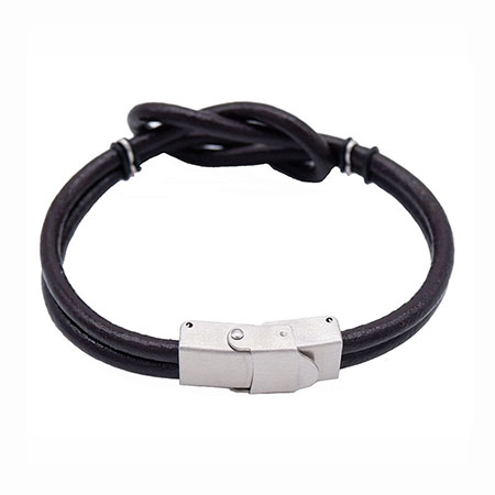 Slim single strand bracelet woven combined with tonal leather and cord, and with a mini clasp in silver finish. A great minimalistic design for bracelet.