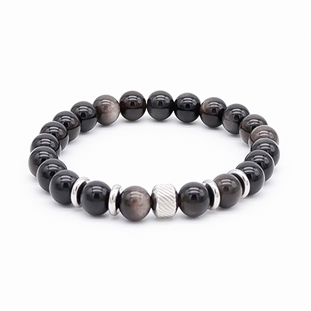 Silver Obsidian Stone Bracelet